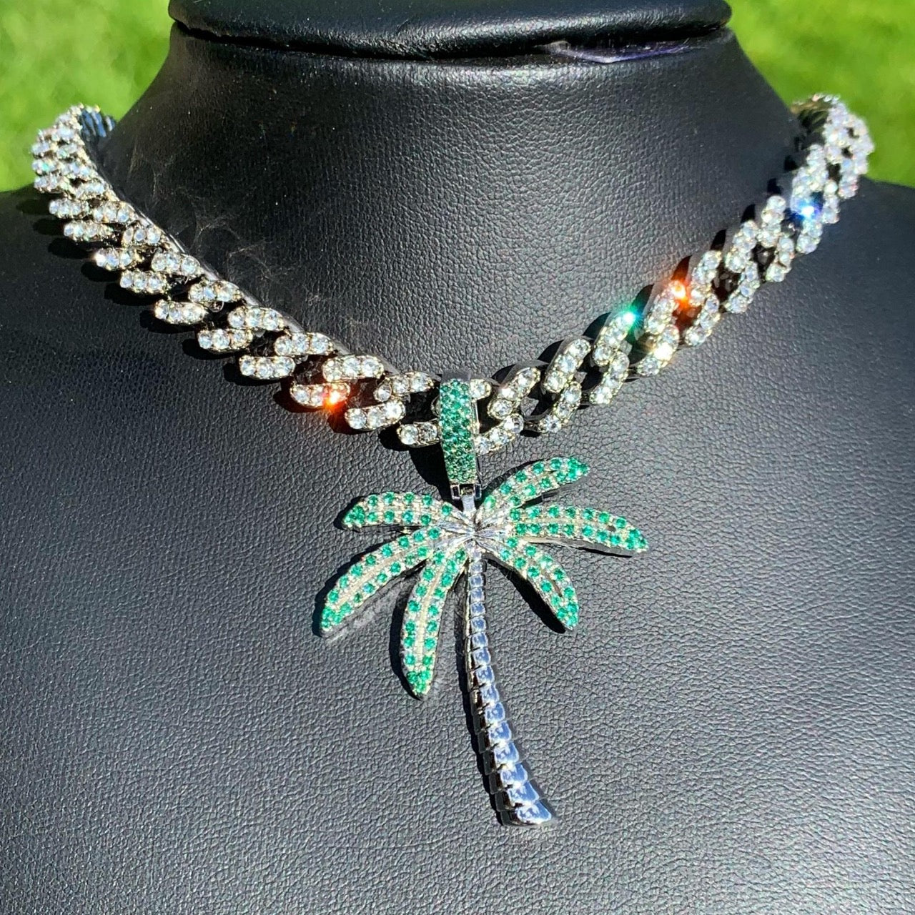 Palm Tree Pendant & Cuban Link Chain Bundle
